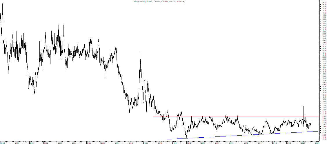 Oggi, invece, sarà molto più rapido, anche perché non tratterò più di tanto a distanza di pochi giorni il rapporto tra il comparto e l’indice generale, e vi propongo l’analisi di Solvay.