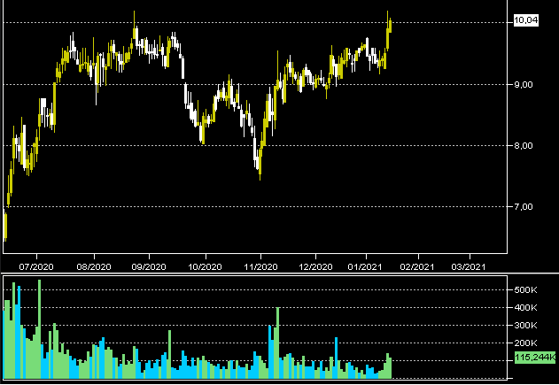 La decisione del punto di ingresso spetta alla propria propensione al rischio, tenendo conto che la rottura ai 10.20€ se sostenuta da volumi, è un buon segnale.