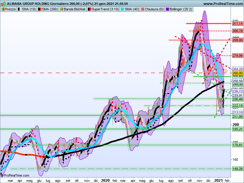 I 170,08 $ sono un livello toccato al culmine della crisi primaverile 2020, sebbene i massimi registrati precedentemente fossero molto più bassi rispetto a quelli recenti. Una correzione fino a questo livello nei prossimi due anni è più che possibile. In presenza di una volatilità media del 41% del titolo Alibaba (su 180 sedute) il rischio quindi di non incassare qualche cedola va preso in considerazione, anche perché i nuovi certificati di Intesa non godono dell’effetto memoria. La valutazione globale porta quindi a consigliare una certa prudenza rispetto a questi certificates, fra i quali va individuato il sottostante dal rapporto rendimento/volatilità migliore in previsione di mercati che a due anni potrebbero anche riservare spiacevoli sorprese.