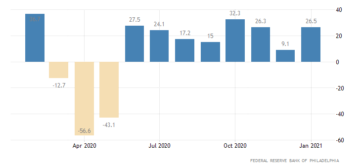 Positiva la fotografia rilasciata dalla FED di Philadelphia sulla salute dell’attività manifatturiera nella medesima area. Il dato rilasciato in settimana è andato nettamente oltre le attese di crescita, attestandosi a 26,5 punti. Meglio del consensus fissato a 12 e del numero revisionato di dicembre pari a 9,1 punti. La quota raggiunta a gennaio, tra l’altro, rappresenta il miglior dato degli ultimi tre mesi. La forza è stata confermata dai sottoindici, con i nuovi ordini rimbalzati di 28 punti a 30 e l'occupazione di 17 a 22.5.