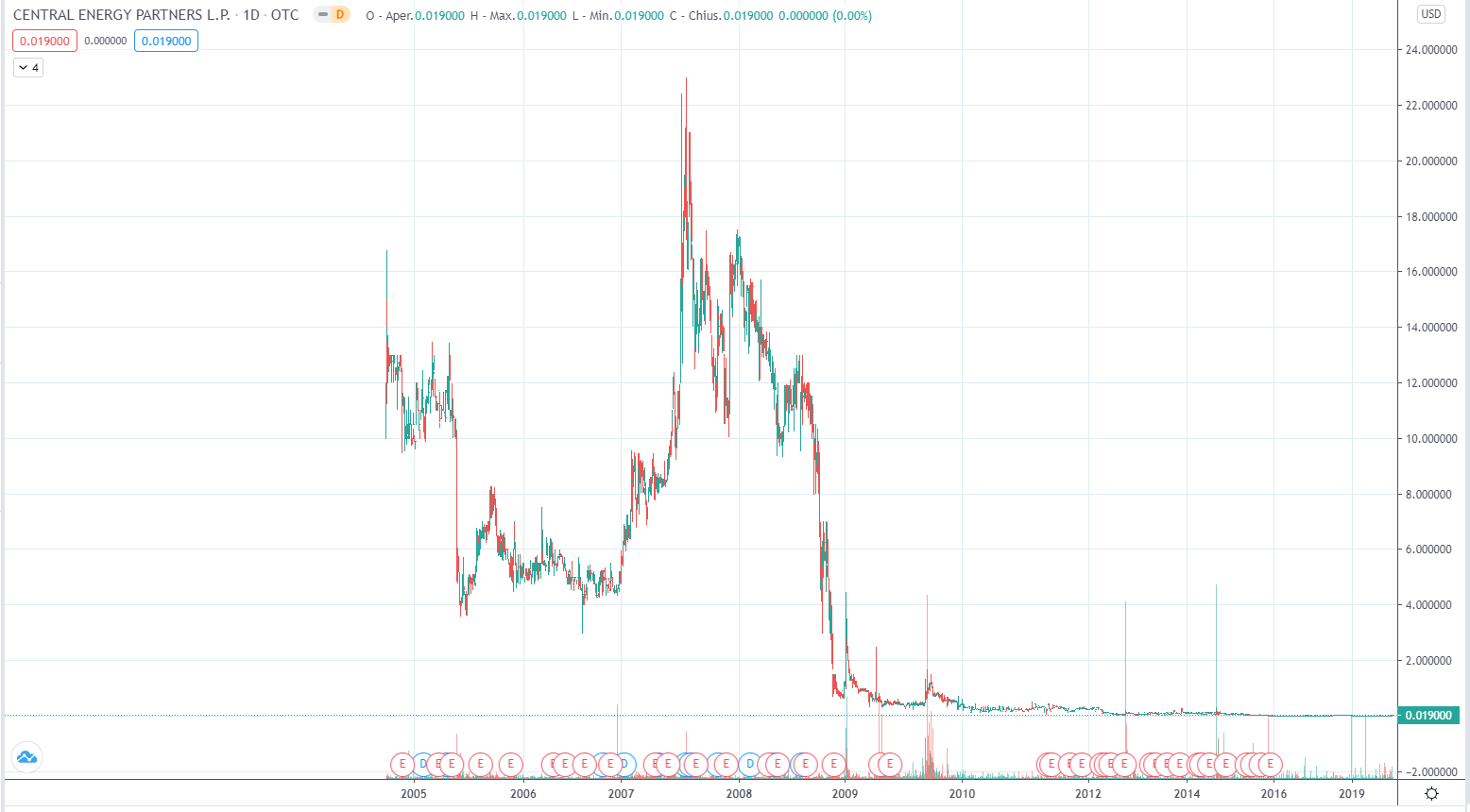 Partenza col botto, prezzo massimo 406$, poi verso lo zero assoluto, rimbalzo ai 100 $ e poi si passa dal becchino più veloce del West.