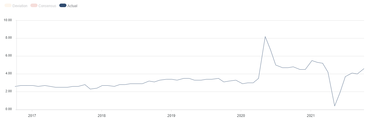 Passando al contesto macroeconomico con la pubblicazione degli importanti dati mensili sul lavoro, il risultato è che la creazione di posti di lavoro è deludente da 2 mesi, ma il motivo è una carenza di offerta, causata in parte dalla variante Delta (si nota dai settori viaggi, tempo libero e ospitality), in parte da resistenze al ritorno al lavoro degli Americani, le cui origini non sono chiare, ma che emergono chiaramente dal calo della forza lavoro, e dalla salita dei salari, che mostra il tentativo delle aziende di assumere/trattenere. Anche le ore lavorate sembrano indicare che le aziende americane cercano di sfruttare il più possibile la forza lavoro a disposizione. Questo report non fermerà la mano della FED nella prossima riunione del 3 novembre, in quanto è evidente che la domanda di lavoro resta abbastanza buona, anche se magari non enorme come all'inizio del terzo trimestre e le pressioni inflazionistiche si stanno rafforzando, proprio in quanto il mercato del lavoro è più tirato di quanto mostri il numero sulla disoccupazione, che comunque sta approcciando livelli bassi. Paradossalmente, un numero di posti di lavoro basso è diventato un segnale che il mercato del lavoro è tirato, e non, viceversa che è debole.
