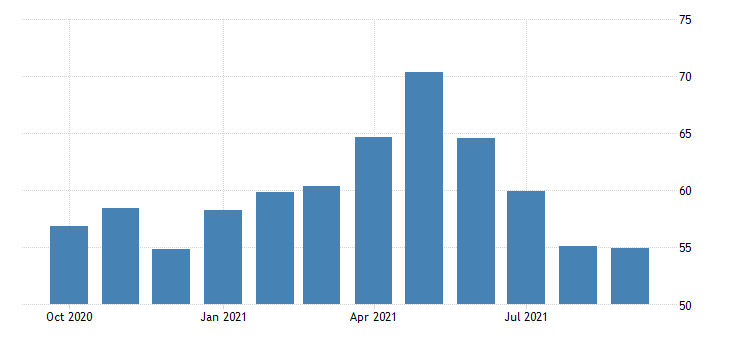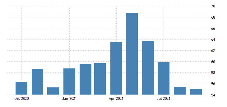 Il dato PMI composite che tiene contro del settore dei servizi e manifatturiero perde qualche punto rispetto al mese di agosto, passando da 55,4 agli attuali 55 punti; un dato superiore a quello preliminare di settembre di 54,5 punti.