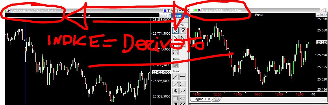 De facto ho commesso una ingenuità: leggendo in alto a sinistra INDICE FTSEMIB ho sempre dato per scontato che quello fosse l'indice, senza preoccuparmi che non lo fosse. Guarda caso però andando alla ricerca del FUTURE sul FTSEMIB40 si scopre che per il broker INDICE FTSEMIB40=FUTURE FTSEMIB40. In Spagna dove avevo lavorato in una sala trading direbbero "orroroso". Chiaramente molti di Voi non si identificavano nei miei livelli.