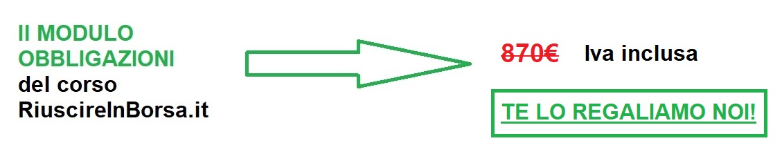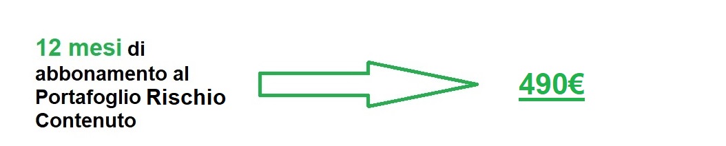 Se sei interessato al Portafoglio Rischio Contenuto, solo fino a domenica 24 ottobre 2021 entro le h 24.00 abbiamo attiva una promozione che ti permetterà di accedere al servizio per 12 mesi al costo di 490€ con incluso il MODULO OBBLIGAZIONI del corso RiuscireInBorsa.it che ti REGALIAMO NOI!