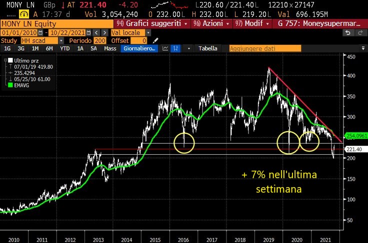 Tra i titoli segnalati MONEYSUPERMARKET, dopo una profonda flessione, ha riportato un'apprezzabile reazione (+7%). L'azienda ha recentemente ufficializzato l'acquisizione del 100% delle quote di QUIDCO (secondo player in GB nel segmento Cashback, pagato £ 87 mln cash). Il management, pur certificando una contrazione dei ricavi nel Q3, si è dichiarato ottimista per l'Ebitda del 2021.