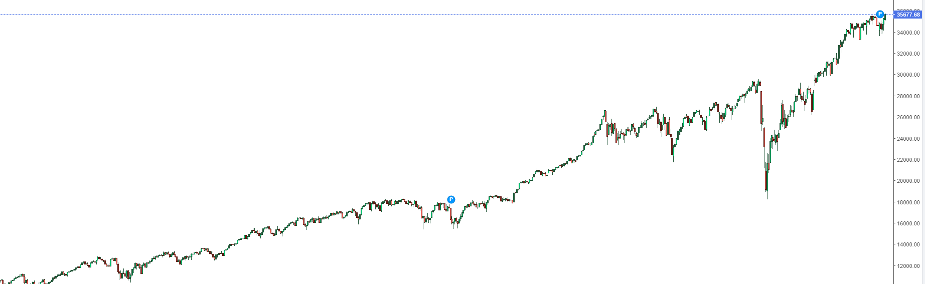 Se il lockdown ha spinto la catena delle società "web based", stessa cosa non si può dire per l'industrial che invece ha patito chiusure lunghe, eppure, il grafico mostra una salita insistente. Anche in questo caso tuttavia, gli utili aziendali non sono nè raddoppiati... nè triplicati.