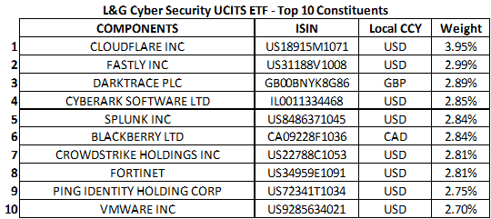 Gli investitori che desiderano ottenere un’esposizione alle società di sicurezza informatica possono considerare l’ETF L&G Cyber Security (ISIN IE00BYPLS672).