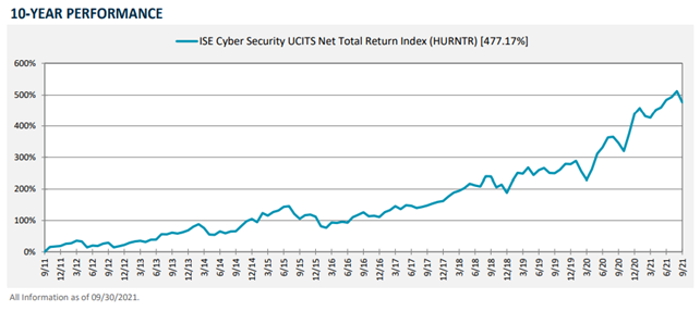 Negli ultimi dieci anni l’indice ha messo a segno un ritorno cumulato pari al 477.17% (si veda il grafico sottostante), sovraperformando notevolmente lo S&P500 che nello stesso periodo è cresciuto del 250% circa.