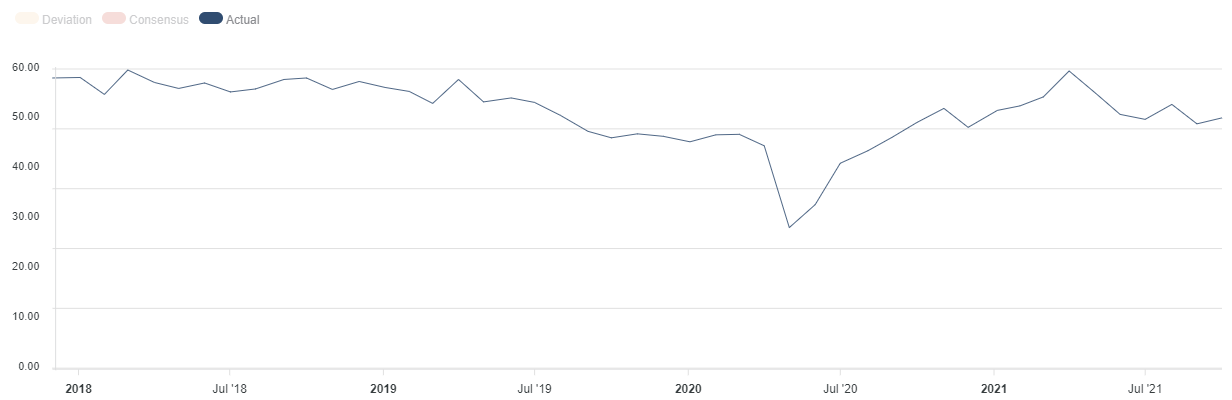 Il dollaro ha anche trovato supporto poiché l'indice ufficiale dei produttori di acquisto della produzione cinese (PMI) per settembre è sceso sotto 50 - da 50,1 di agosto a 49,6 - mettendolo in contrazione per la prima volta dall'inizio della pandemia. L'attività della fabbrica è stata influenzata dalle restrizioni sulle forniture di elettricità e dalle misure di riduzione dell'inquinamento, nonché dalle preoccupazioni per l'impatto della crisi del debito del gigante immobiliare cinese Evergrande sull'economia in generale.