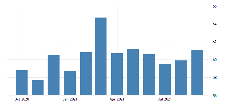 Sempre elevato l’indice dei nuovi ordini che si attesta a 66,7 punti, esattamente come ad agosto. L’impressione è che gli ordini siano gonfiati per le note difficoltà a farsi consegnare la merce.
