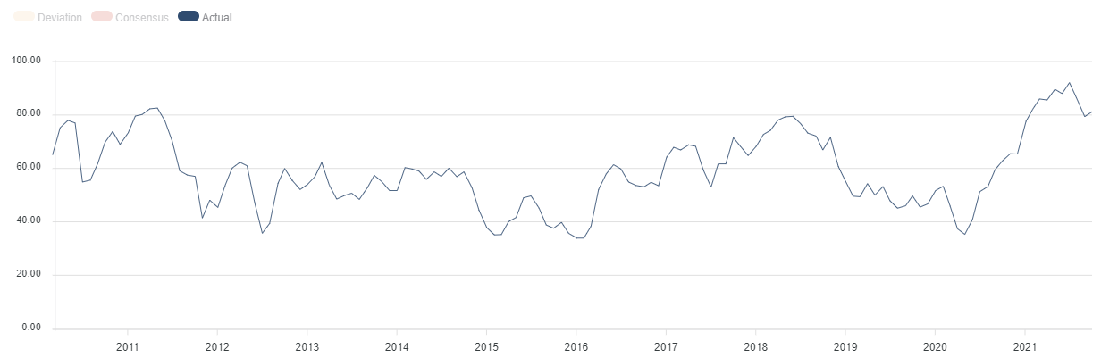 Infine, i prezzi salgono ad 81,2 punti, contro i 79,4 punti di agosto e contro un consensus di 78,5 punti.