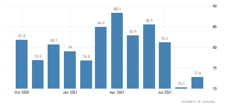 A settembre il dato sulla fiducia dei consumatori elaborato dall’Università del Michigan si attesta a 72,8 punti, andando oltre al dato preliminare di 71 punti e a quello di agosto di 70,3.