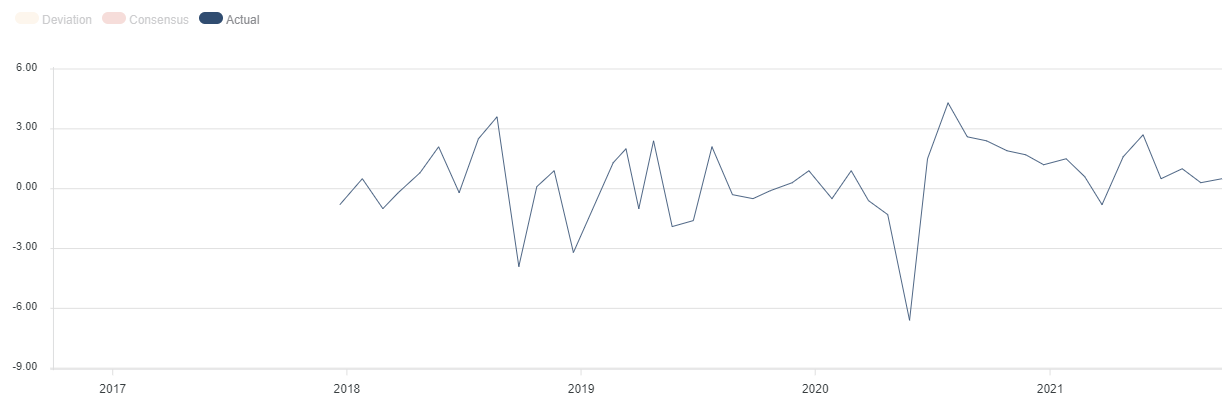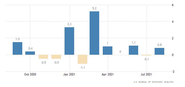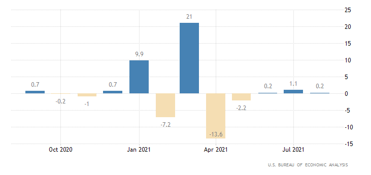 E a proposito d’inflazione, ad agosto ha raggiunto un nuovo massimo di 30 anni. La misura dell’inflazione preferita dalla FED, ovvero l’indice dei prezzi di spese per consumi personali core, è cresciuto dello 0,3% a livello mensile e del 3,6% rispetto all’anno scorso.
