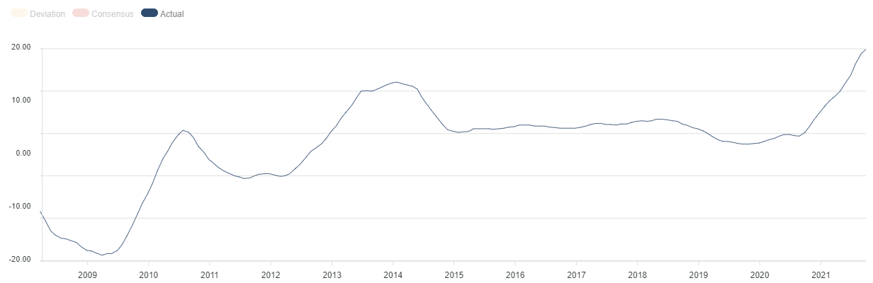L’S&P Case-Shiller Home Price Index, che misura i cambiamenti nel prezzo di vendita di case unifamiliari in 20 aree metropolitane degli USA, a livello annualizzato a luglio è cresciuto del 19,9%, migliorando il +19,1% di giugno, ma attestandosi sotto al consensus del 20%. Il dato è rilasciato da Standard & Poor's.