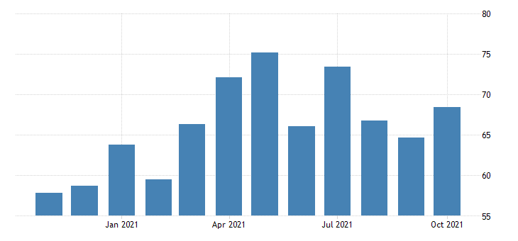 Il dato mensile di ottobre del Chicago PMI, elaborato dall’ISM-Chicago, conferma un’economia che dà segnali di ripresa battendo il consensus fissato a 63,5 punti ed attestandosi a quota 68,4 punti. Dato superiore a quello di settembre, pari a 64,7 punti.