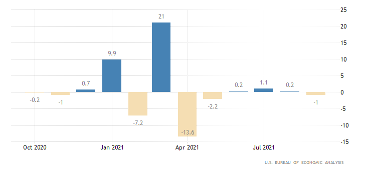 Venerdì scorso l’U.S. Bureau of Economic Analysis ha reso noti anche I dati relativi alla spesa ed al reddito personale. A livello mensile, a settembre la spesa personale è cresciuta dello 0,6%, realizzando un rialzo di poco superiore a quello previsto dal consensus (+0,5%), ma rallentando rispetto al +1% di agosto (dato rivisto da 0,8%). A livello mensile a settembre il reddito personale scivola perdendo l’1%, dopo il +0,2% di agosto. Il consensus prevedeva un calo dello 0,2%.