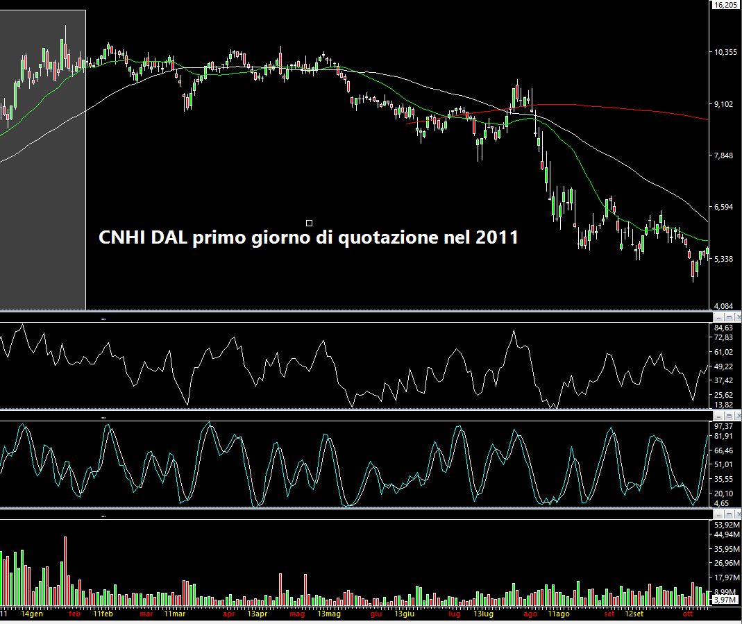 Di seguito trovate il grafico daily di CNHI dal primo giorno di quotazione. Inizialmente c'è stata una discreta salita.