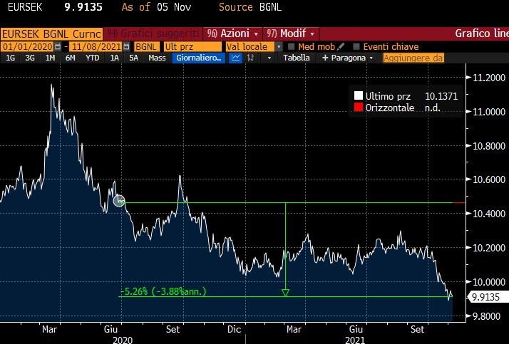 A parziale consolazione si può citare un favorevole andamento del cambio EUR-SEK: dalla segnalazione, la corona svedese si è apprezzata del 5,26%.