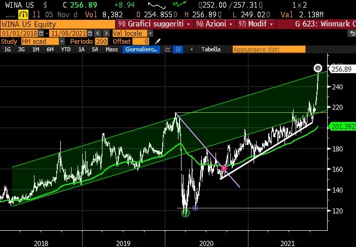 Settimana volatile nella quale viene realizzato prima il massimo storico (€ 206) e poi una rapida discesa fino a € 188. Il titolo ha chiuso venerdì a € 194,4.
