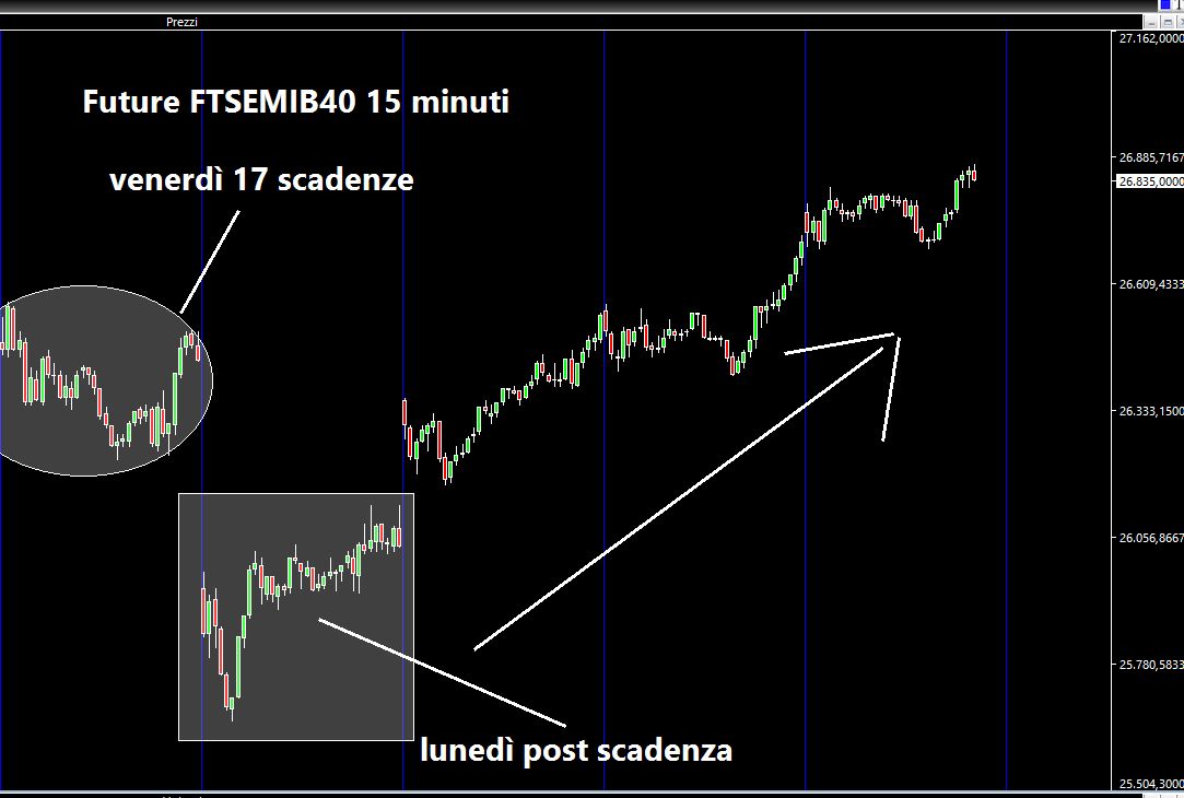 Venerdì 17 per chi non lo ricordasse è stato il giorno delle scadenze tecniche in cui mi aspettavo il profit taking (che a dirla tutta è culminato questa settimana col ribasso di lunedì in cui sono stato pesantemente compratore, seppur con qualche timore, non lo nascondo). Facendo le mie consuete analisi del fine settimana guardate un pò quello che è stato il comportamento degli indici