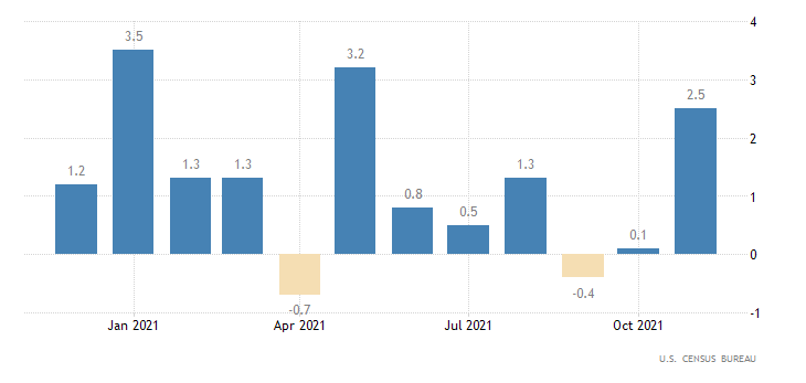 Molto buono il dato sugli ordini di beni durevoli a livello mensile che a novembre realizza un incremento del 2,5%. Si tratta di una crescita superiore a quella prevista dal consensus fissato ad 1,6% e ben superiore a quella registrata ad ottobre, dello 0,1% (dato rivisto da -0,5%). Il dato è rilasciato dall’U.S. Census Bureau.