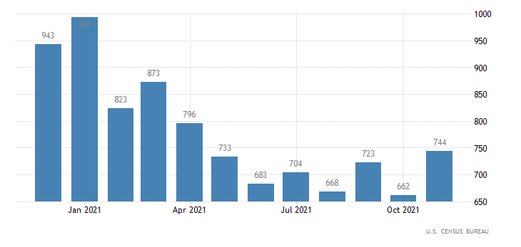Nel mese di novembre il dato sulle nuove case vendute si attesta a quota 744 mila, al di sotto del consensus fissato a 770 mila. Ma la revisione del dato di ottobre cambia completamente aspetto ai numeri passando da 745 mila a 662 mila. Il dato è rilasciato dall’U.S. Census Bureau.
