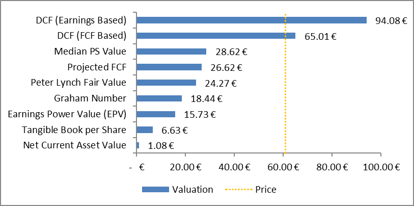Secondo diversi modelli di valutazione il titolo, in questo momento, è molto sopravvalutato (si veda il grafico sottostante).