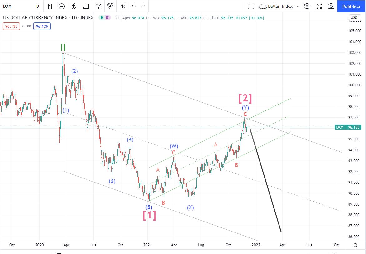 Per il Dollaro dopo aver terminato l’onda [2], si appresta a scendere facendo salire l’Euro. A questo punto andrebbe tutto bene se non fosse per il fatto che l’emittente (Societè Generale) ha deciso di delistare l’ETC che abbiamo in portafoglio.