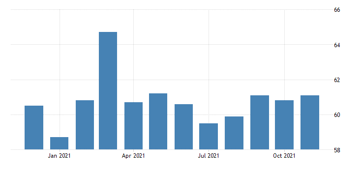 Il dato PMI manifatturiero elaborato da ISM a novembre tocca quota 61,1 punti, con una crescita di 0,3 punti rispetto ad ottobre (dato a 60,8 punti). Il rialzo registrato è appena superiore al consensus fissato a 61. Il rialzo è marginale ma si trova su livelli storicamente elevatissimi. Nello specifico, il dato sull’occupazione nel settore manifatturiero passa dai 52 punti di ottobre ai 53,3 punti di novembre. In crescita anche il dato sui nuovi ordini che a novembre si attesta a 61,5 punti contro i 59,8 di ottobre. Infine, flessione per i prezzi del settore manifatturiero, con il dato che scivola dagli 85,7 punti di ottobre agli 82,4 di novembre.