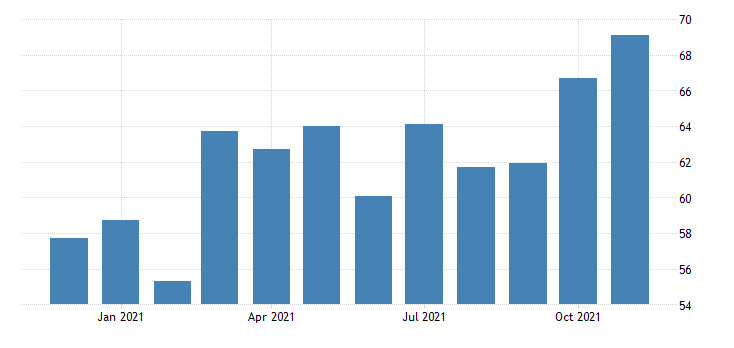 Il dato PMI sui servizi elaborato da ISM ha nuovamente sorpreso in positivo, staccando il nuovo record della serie, iniziata nel '97, crescendo a novembre fino a raggiungere i 69,1 punti, dopo essersi attestato a 66,7 punti ad ottobre. Il consensus prevedeva un calo a 65 punti. Nel settore dei servizi a novembre rimangono molto forti i nuovi ordini restando a quota 69,7 punti come ad ottobre (altro record); i prezzi calano dagli 82,9 punti di ottobre agli attuali 82,3; l’occupazione, infine, fa un balzo dai 51,6 punti di ottobre ai 56,5 punti di novembre.