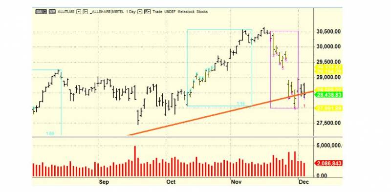 Sul nostro indice Ftse All Star le due trendline che passano sotto la curva dei prezzi sono ancora intonse e i prezzi si stanno addensando sopra la prima trendline rialzista che sarebbe un ottimo punto per il rimbalzone di Natale: