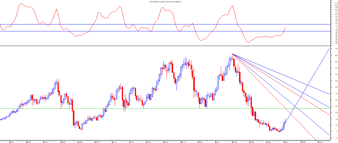 Nella parte superiore del grafico, l’Efficiency index si riporta al di sopra di -15 generando un segnale positivo e questo è molto incoraggiante.