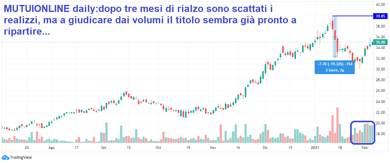 A metà gennaio, com’è nell’ordine delle cose dopo un rialzo così importante e in tempi così ridotti, sono arrivate le prime prese di profitto, che hanno trascinato il titolo giù di quasi il 20% dal massimo assoluto del 12 gennaio.
