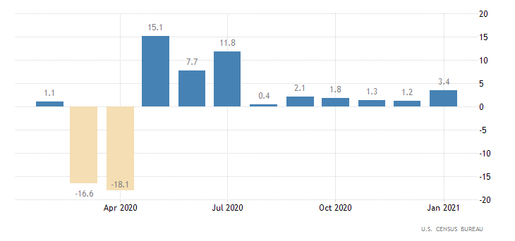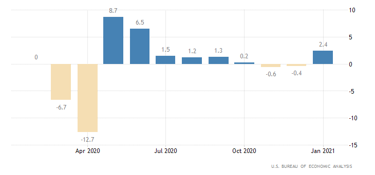 Nel quarto trimestre del 2020, il dato annualizzato preliminare del PIL segnala un’espansione del 4,1%. Nell’ultimo trimestre dell’anno c’è stato un rallentamento evidente rispetto al terzo trimestre, quando si era registrata un’espansione del 33,4%. Il dato è elaborato dall’U.S. Bureau of Economic Analysis.
