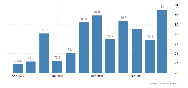 L'impatto iniziale del piano fiscale si è notato nella lettura del dato preliminare di marzo dell’indice di fiducia dei consumatori, elaborato dall’Università del Michigan, che sale positivamente dai 76,8 punti di febbraio ad 83 punti, contro una previsione fissata a 78,5. In crescita anche la componente relativa alle condizioni attuali che per il dato preliminare di marzo tocca quota 91,5 punti a fronte di un dato di febbraio ad 86,2 punti ed un consensus ad 88,3.