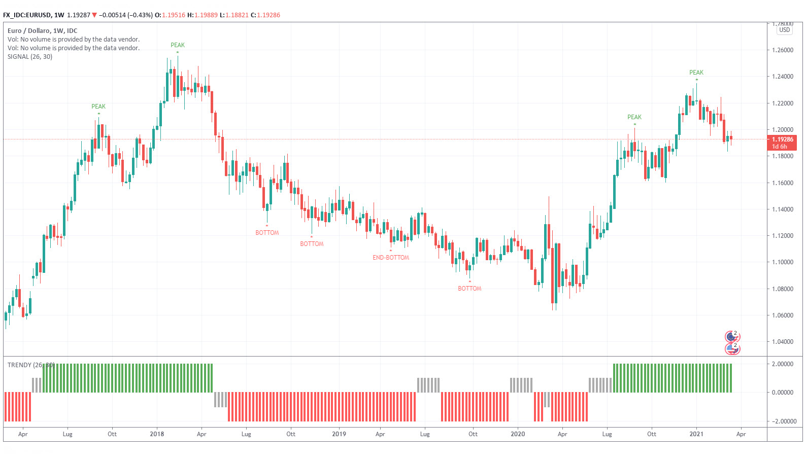 Anche questo è un livello importante, poiché è molto probabile che la rottura al ribasso porti una veloce accelerazione che farebbe anche cambiare lo stato del modello Trendycator, il quale fornirebbe il primo segnale di possibile inversione