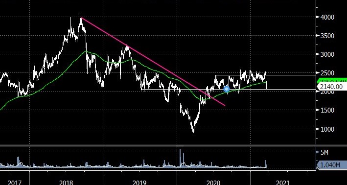 Dal punto di vista grafico, le quotazioni hanno rotto a ribasso la media mobile a 200 giorni.