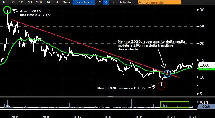 Dal punto di vista grafico, il titolo sta provando a mettersi alle spalle la resistenza posta a € 14.