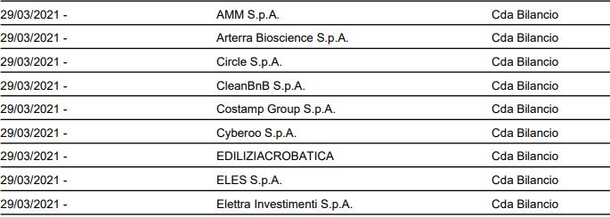 Di seguito il calendario societario per la prossima settimana (Fonte dati: Borsa Italiana).