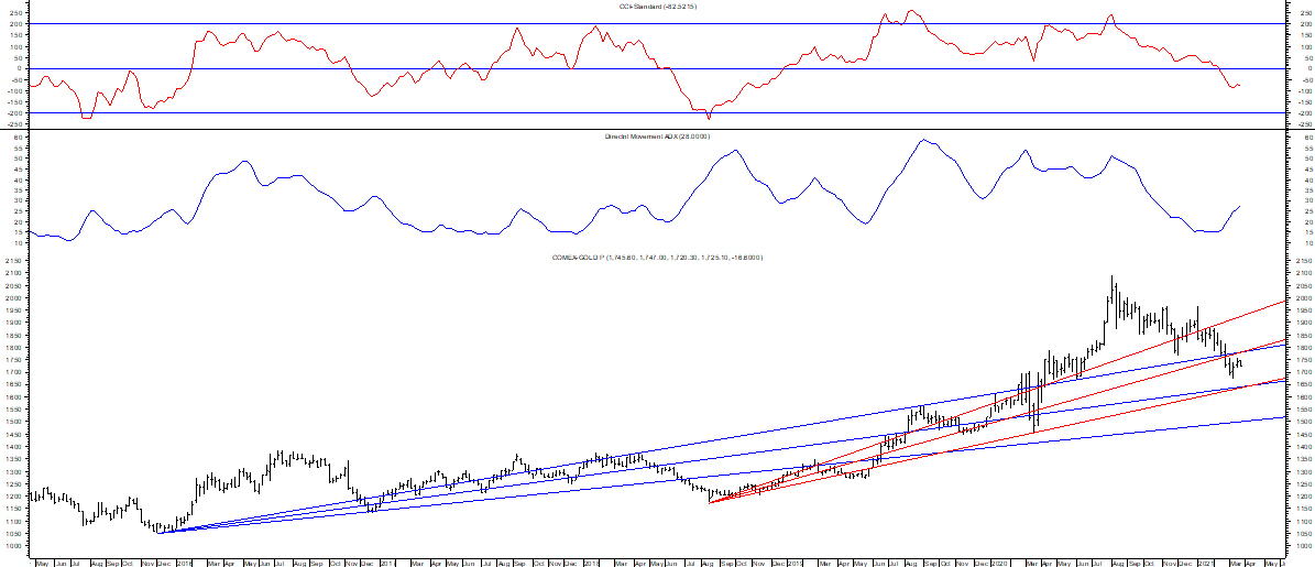 Infatti, la ciclicità dell’oro, evidenziata con questo oscillare, è estesa a qualche anno e occorre armarsi di pazienza.