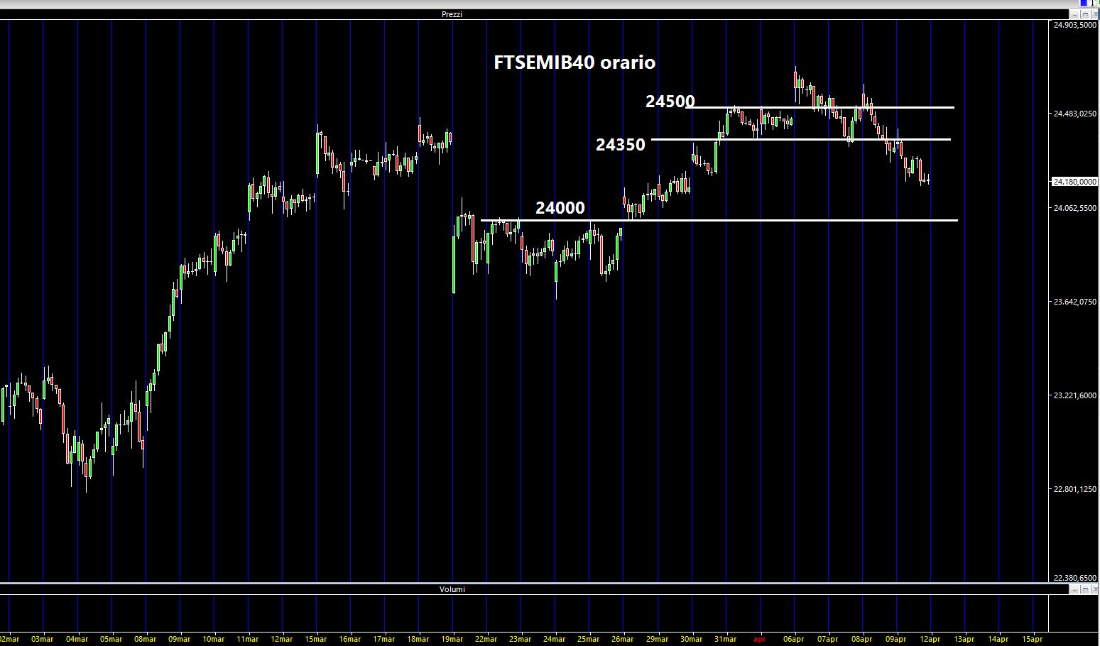 Per la prossima settimana le aree chiave al rialzo sono collocabili a 24350 e 24500 (resistenze) mentre al ribasso abbiamo i 24000 come supporto importante.