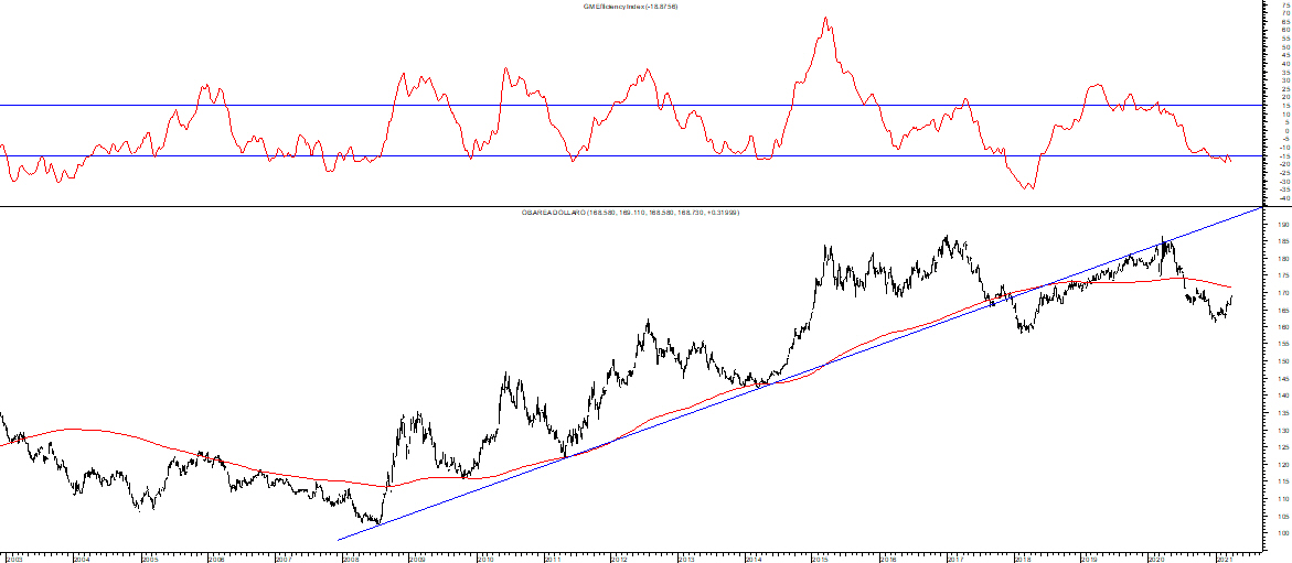 La parte superiore del grafico è “occupata” dal mio Efficiency Index che consolida attorno a -15. Anche in questo caso, tale livello si è dimostrato molto importante.
