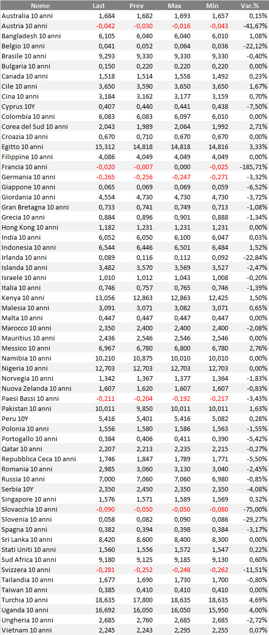 Bond Governativi Mndo Weekly Ranking