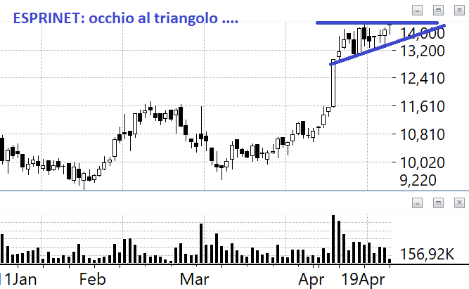 Però il triangolo è stretto e lungo e soprattutto sul mensile abbiamo una barra enorme e vale sempre la regola del tre ... siccome un orologio rotto due volte al giorno segna l'ora corretta ricordo che 10 anni fa feci la previsione che sarebbe arrivata a 17 / 18 euro ( è una battuta ovviamente ... non sul fatto che possa arrivare a 18 perché quello è realtà ma sul fatto che ci ha messo 10 anni la previsione a diventare vera ... ).