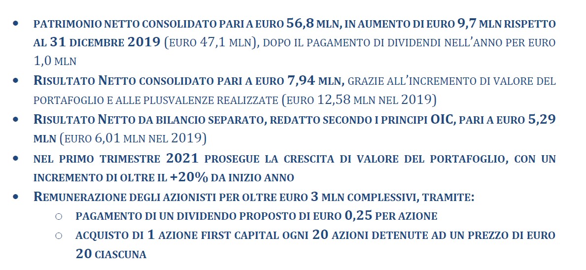 PROSPETTIVE DI FIRST CAPITAL PER IL 2021: