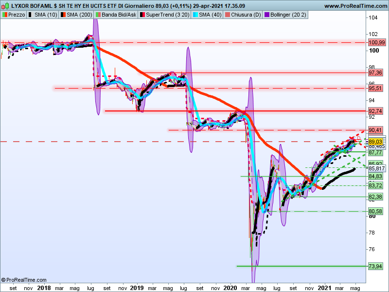 Situazione simile per l’Etf Lyxor Usd Short High Yield Monthly Hedged (LU1617164212), pure delistato. Un lettore se ne dispiace perché rendeva bene e chiede cosa fare: venderlo prima o attendere il delisting? Inoltre il dividendo 2021 si perderà? Innanzi tutto esprimiamo la nostra sorpresa per una scelta poco comprensibile, poiché l’Etf in passato scambiava molto. Il mercato è ora deciso ad anticipare l’operazione dell’emittente, visto che gli scambi sono aumentati da lunedì. Sembrerebbe quindi determinato a precorrere le scelte di Lyxor e in effetti spesso ciò accade in presenza di delisting, non fosse altro per portare a casa il relativo capitale e ricollocarlo subito su altri strumenti. In relazione alla cedola il problema non esiste, poiché essendo un Etf obbligazionario si verifica un progressivo accumulo del relativo importo con l’effetto stacco alla data prevista, quando il valore cala in rapporto all’ammontare di quanto corrisposto. Lo evidenzia bene il grafico, che mette in luce come l’effetto cedola concentrata (a luglio) sia sempre stato molto forte e come i minimi della primavera 2020 abbiano rappresentato un’ottima occasione soprattutto per chi oggi si trova ad affrontare il delisting. Da segnalare infine come il rendimento teorico in corso sia del 5,6%, valore calcolato però sull’importo pagato lo scorso anno (5,02 euro) e rapportato all’ultima quotazione di ieri. Quanto avrebbe pagato quest’anno? Non lo sapremo mai perché il delisting avverrà alla stessa data del 20 maggio prevista per gli Etf di cui abbiamo scritto sopra.