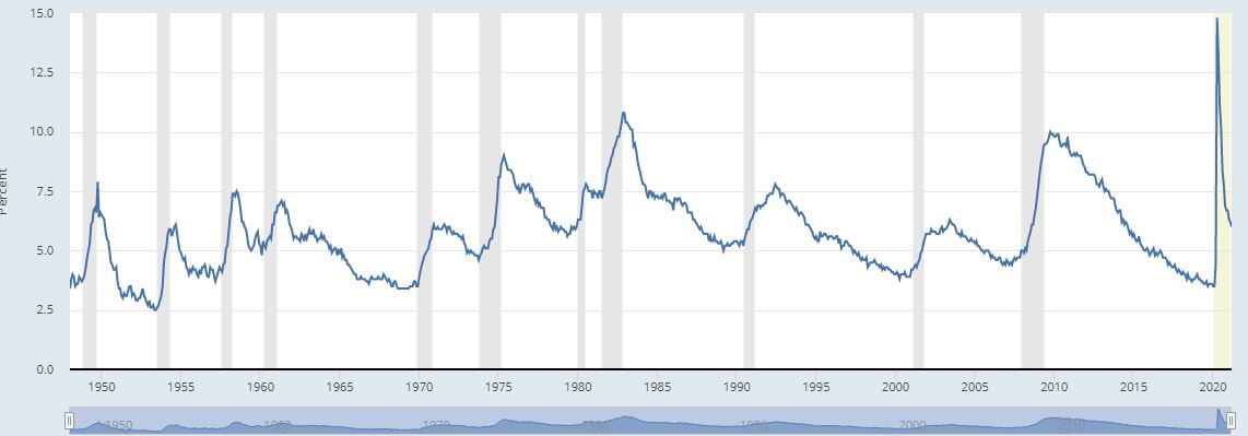 Si protrae la fase di stallo e di assenza di volumi sul nostro mercato che sta mostrando un pò di debolezza rispetto alla reattività di altri indici. In intraday l'Italia scende "in sintonia" con gli altri indici ma nelle fasi di rimbalzo sottoperformiamo. Come ben sapete ci avviciniamo anche allo stacco dei dividendi su molti titoli e credo che molti operatori optino per il cosiddetto "coupon washing": si vende prima (quando il titolo incorpora ancora il dividendo) per ricomprare più avanti dal momento che le azioni mostrano una naturale tendenza ad indebolirsi subito dopo lo stacco ed in rari casi recuperano lo stacco in tempi brevi. A prescindere da tutte queste considerazioni sulle quali ovviamente non c'è certezza, è un dato di fatto che mancano gli spunti operativi un pò su tutti i mercati (Italia in primis) e manca la liquidità. Parlavo al telefono con un amico questa mattina e mettevo in evidenza come de facto ci sia una dicotomia a livello di fondamentali tra Europa (che langue) e Stati Uniti dove le richieste di sussidi diminuiscono continuamente e l'occupazione è in fase espansiva. Ovviamente il nostro mercato segue ciò che fanno gli altri ma è altrettanto vero che finchè gli altri non scendono con decisione è difficile che si riesca ad andare per la nostra strada. E qui veniamo al punto: con fondamentali solidi l'economia americana non può crollare. Magari può stornare, anche di un 10/15% ma al momento rimarrebbe comunque uno storno in un bull market. Questo a mio modo di vedere. Di seguito trovate l'unemployment Rate elaborato dalla Fed di St. Louis (in grigio vengono indicate tutte le recessioni dagli anni 50 ad oggi che si sono avute a seguito di picchi "debordanti" della disoccupazione).