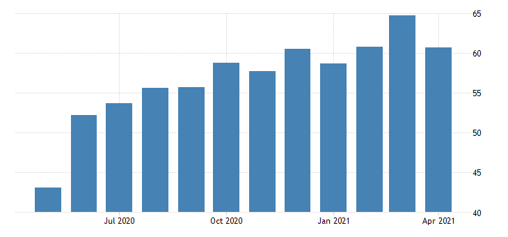 La scorsa settimana si è aperta con la pubblicazione del PMI manifatturiero elaborato da Markit Economics. Il dato di aprile, sempre su livelli elevatissimi, si è attestato a quota 60,5 registrando un incremento rispetto al 59,1 di marzo, ma rimanendo leggermente sotto il dato preliminare che era di 60,6 punti.