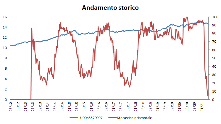 Anche questo Fidelity vanta una permanenza dello Stocastico orizzontale molto elevata oltre 70, pari al 55.6%, mentre è stato in grado di oltrepassare quota 90 soltanto nel 10.5% del tempo.